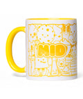 Porta a casa l'universo Mid con questa esclusiva tazza che racchiude tutti gli iconici sticker del brand! Un collage creativo in giallo su sfondo bianco che celebra l'identità visiva di Mid, con il logo centrale circondato da tutti i personaggi e simboli che rendono unico il nostro mondo.